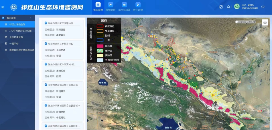 2023年,张掖市以大数据、大格局、大服务理念为指导,在“一库八网三平台”的基础上,对张掖市生态环境监测网络管理平台进行扩容升级,建设了一个集卫星遥感、数据集成、风险预警、任务调度、执法监管为主要内容的“天上看、空中拍、地上查、网上管”天空地人一体化的智慧张掖生态环境监测网络,充分发挥数据的基础资源和创新引擎作用,通过数字化手段不断提升生态环境治理能力和监管水平。
