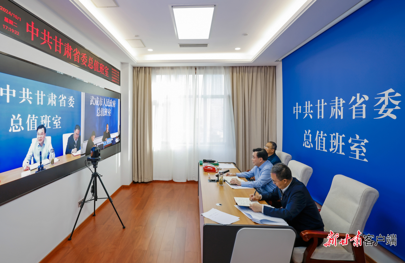 10月1日,国庆假期第一天,省委书记、省人大常委会主任胡昌升来到省委总值班室,视频调度全省国庆假期值班值守、民生保障、安全生产等重点工作,代表省委、省政府向节日期间坚守一线的干部职工致以诚挚问候和节日祝福。新甘肃·甘肃日报记者 孟捷