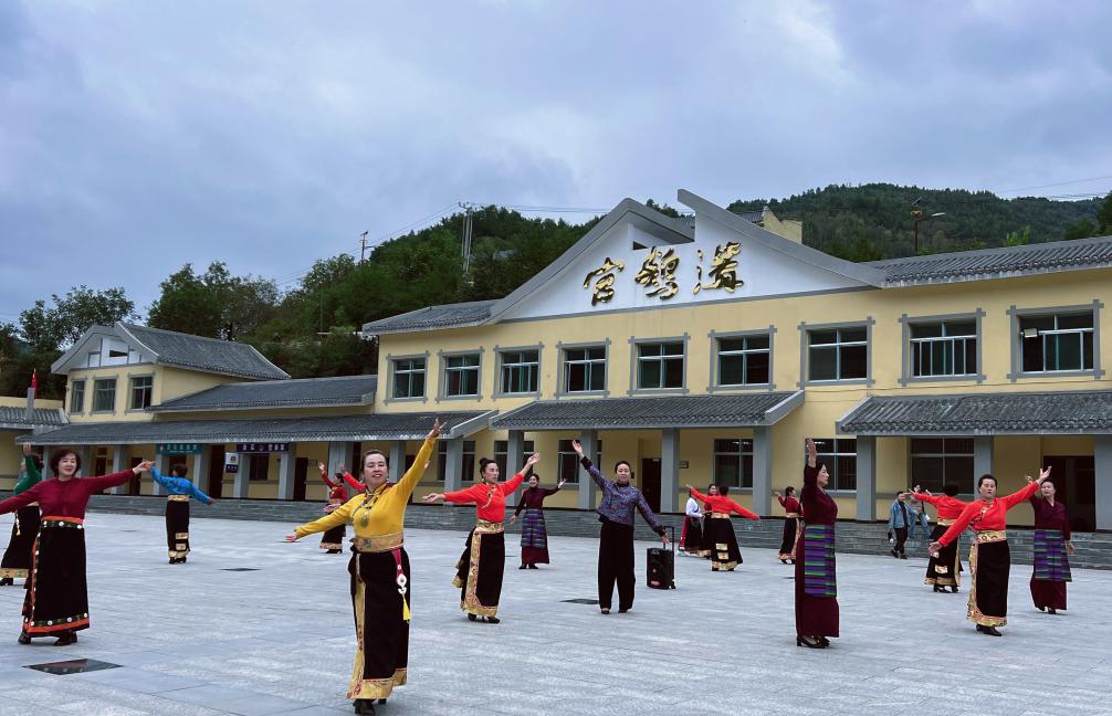 在官鹅沟大景区内,身着民族服饰的表演者载歌载舞。(受访者供图)