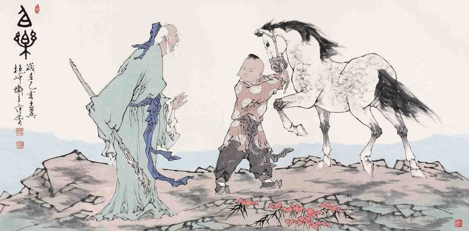 范曾 国画作品《伯乐图》。
