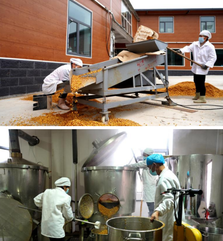 来到陈井镇瞿家庄村,在永靖县健辉种植农民专业合作社的枣合百顺酒业有限公司发酵间,阵阵浓郁的酒香扑鼻而来。生产车间内,工人们正忙碌地劳作着,他们熟练地挥舞着工具,将蒸煮后的玉米等原料进行摊晾拌曲。然后将发酵好的百合液和蒸煮过的玉米原料加入蒸锅进行蒸馏。经过一道道严谨细致的工序后,一股清澈的玉米百合酒缓缓流出,香气沁人心脾。