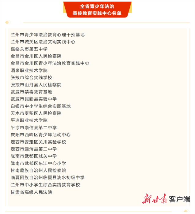 天水1个!全省确定23个青少年法治宣传教育实践中心