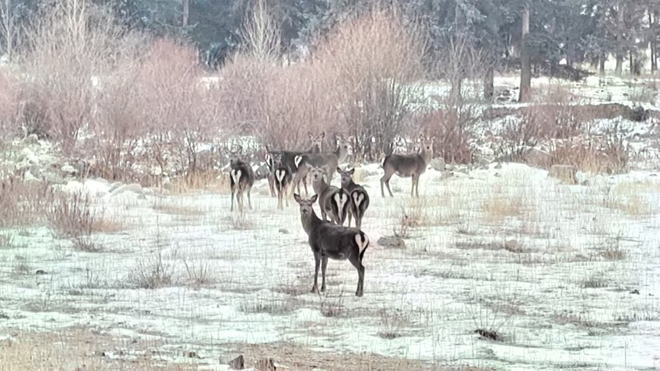 近日,甘肃祁连山国家级自然保护区管护中心哈溪自然保护站华山资源管护站管护人员在野外巡护过程中,在辖区海拔2900米的山区内,偶遇一群正在觅食的马鹿,立刻用手中的巡护终端拍摄到了这珍贵的画面。