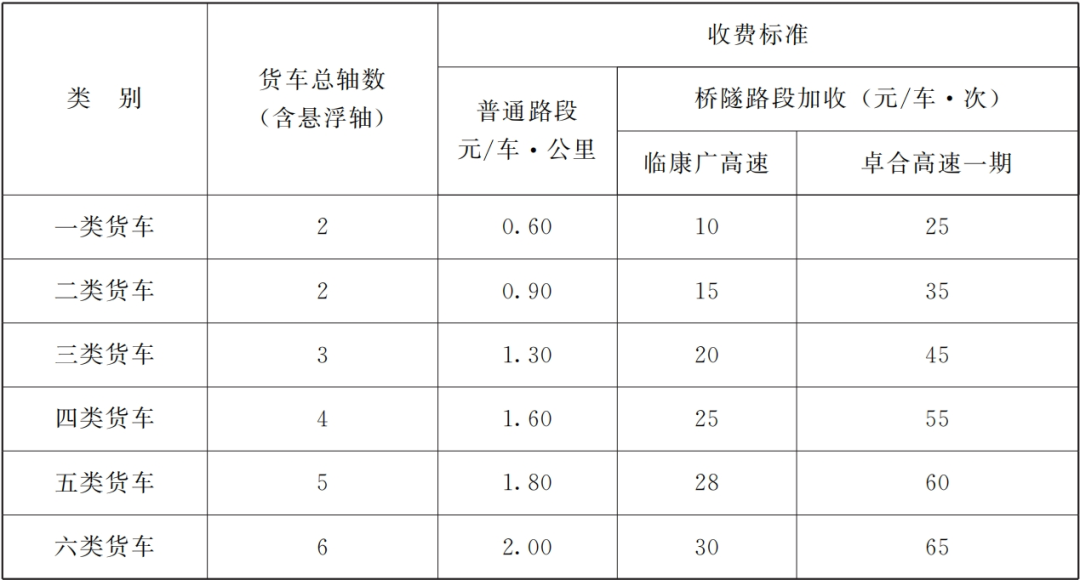 注:通行费计费规则按交通运输部《收费公路联网收费运营和服务规则(2020)》《收费公路联网收费运营和服务规程(2020)》以及相关规定执行。6轴及以上货车桥隧加收标准按6轴货车标准收取,6轴及以上专项作业车车辆通行费按6轴货车收费标准收取。