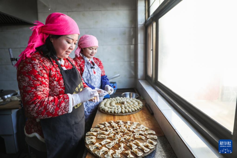1月7日,在庆阳市环县洪德镇耿塬畔村,村民在制作年食糖角角和油果果。新华社记者 郎兵兵 摄