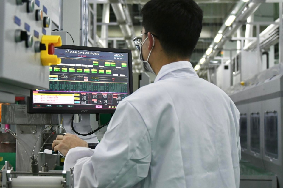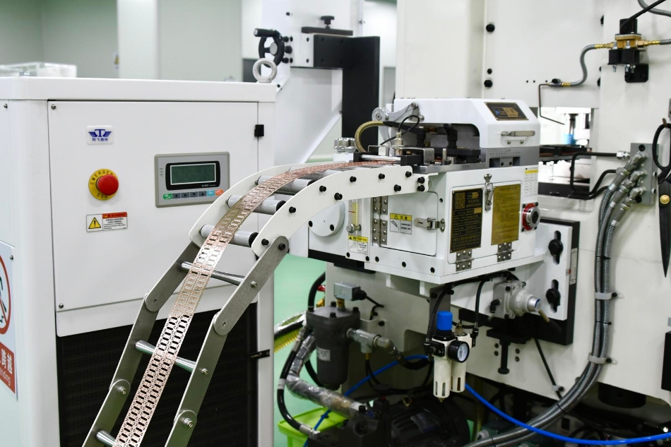 来到位于生产线前端的清洗线铜带上料区,王世卓告诉记者,企业用于生产的核心设备全部都是国外进口,对标的是新加坡ASM的先进产线,极大地提高了企业的生产效率,工人们只需要负责上下料、及时供应所需材料,确保设备正常运转。