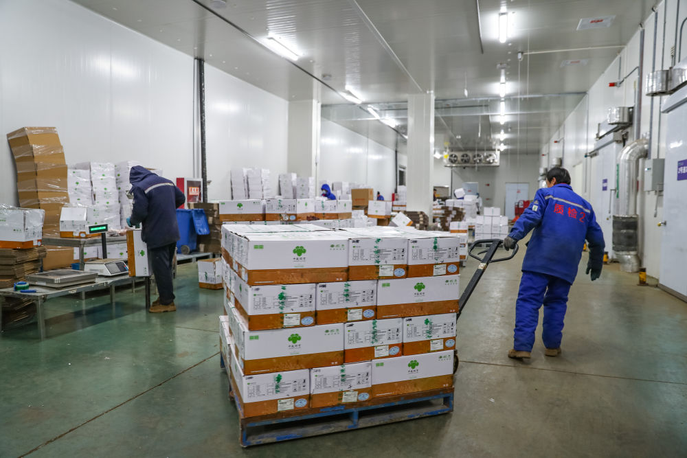 一路同行,申娇带记者来到合作方环县中盛羊业发展有限公司。这家公司生产线终端的3个出货仓冷链车辆正在一刻不停地交替发车。