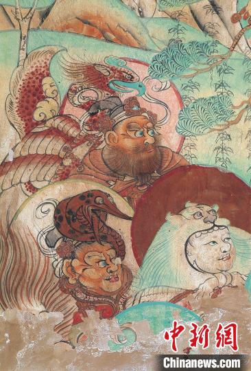 榆林窟第25窟北壁左侧弥勒经变之天龙八部。(敦煌研究院 供图)