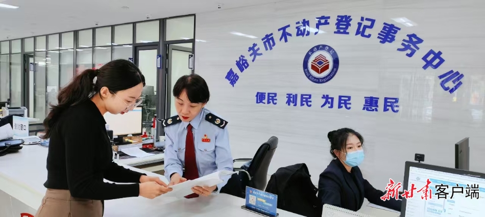嘉峪关市不动产登记中心工作人员贴心服务群众。嘉峪关市营商环境建设局供图
