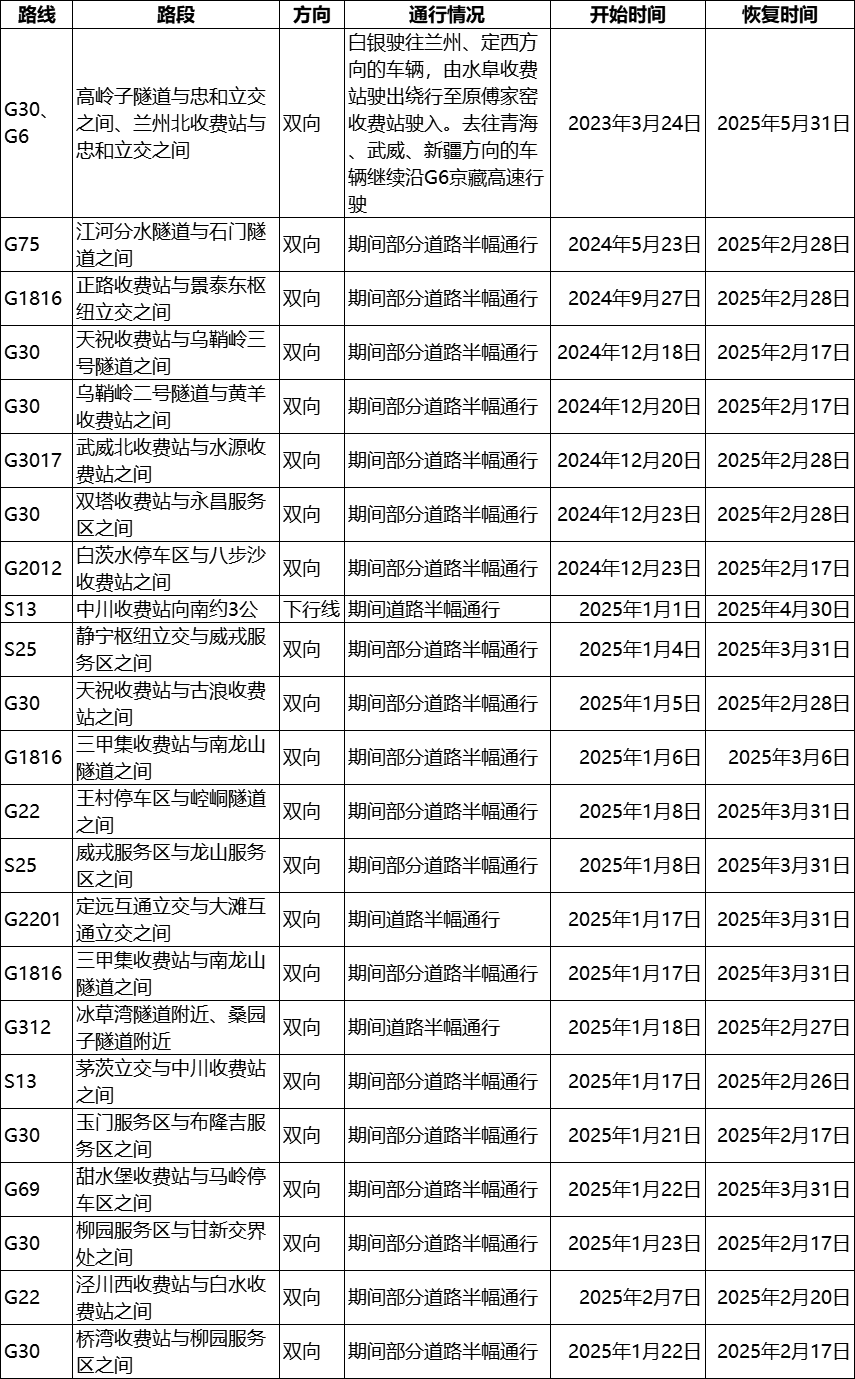 截止7点我省高速公路甘南部分路段小雪,其余路段天气阴或多云。