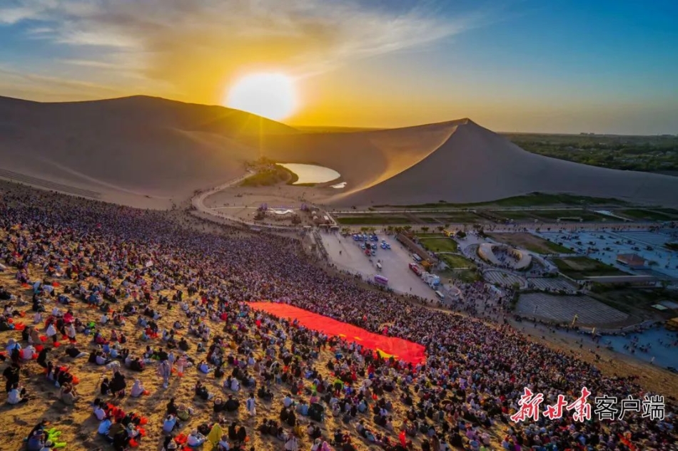 5月4日,“抖音落日合唱派对·五四青春场”在敦煌鸣沙山·月牙泉景区举行。陈坤 摄
