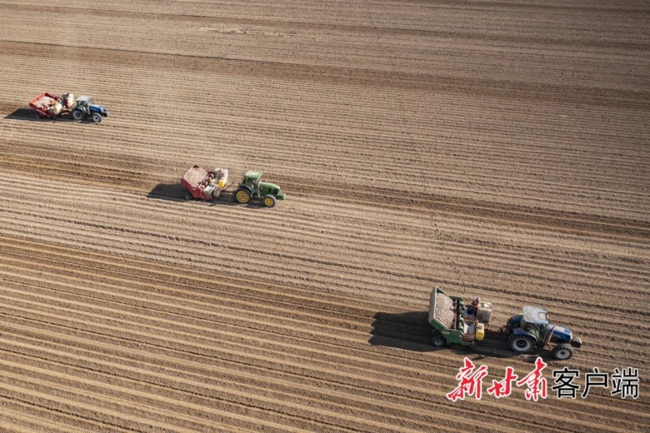 河西地区机械化播种现场。