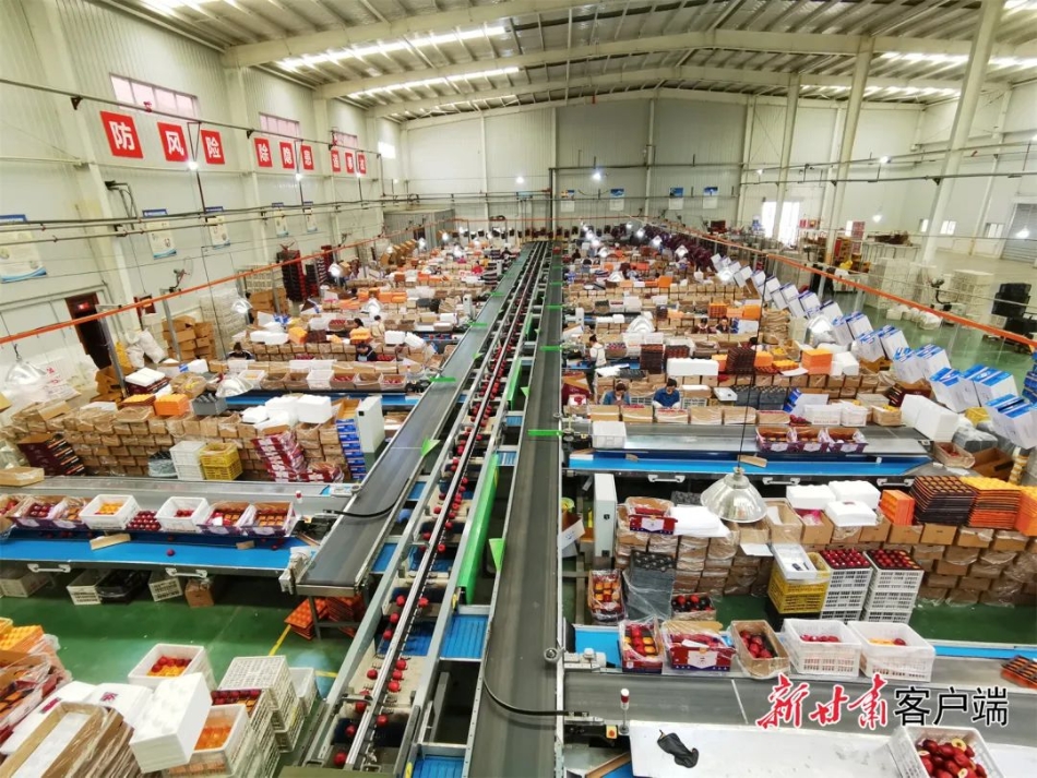 繁忙的花牛苹果自动化生产线。