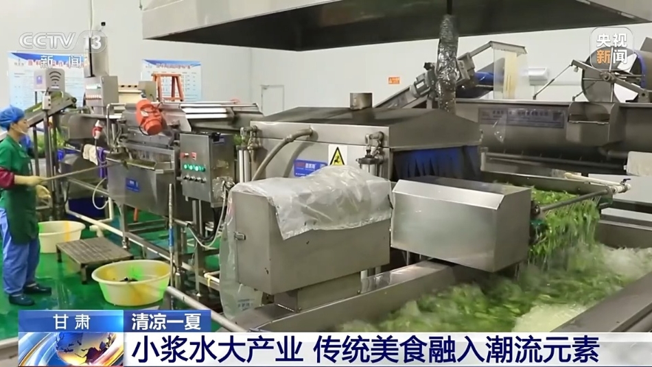 在甘肃一家食品企业,占地8600平方米的现代化浆水生产车间中,7条全自动生产线高效运转,洗菜、切丝、烫菜一气呵成。和传统酿造不同,在这里,除了发酵环节,浆水的其它生产过程均实现了自动化。除了普通浆水,这里还有速食浆水面、速食浆水米线以及浆水饮料等产品。