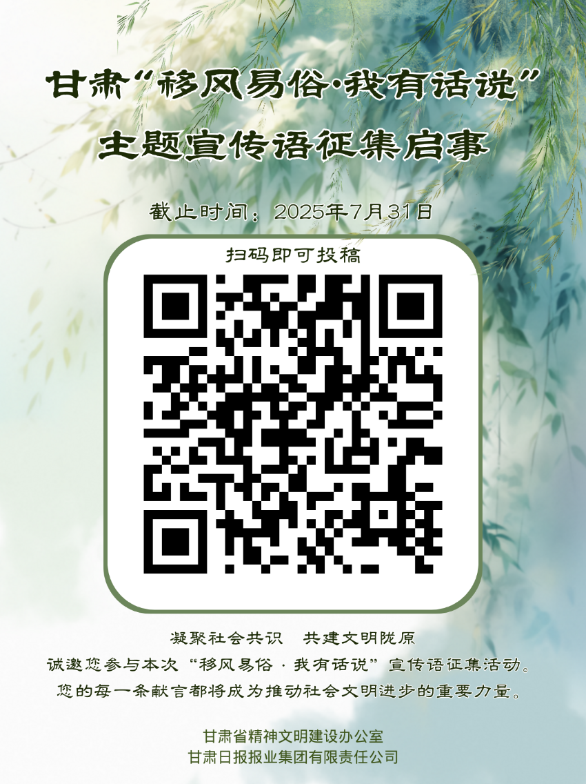 参与者可通过扫描二维码进入征集活动页面,填写征集内容、作者信息及原创声明后提交。活动虽不设奖励环节,但获评作品将在甘肃文明网、甘肃日报、新甘肃客户端等众多平台集中展示,并广泛应用于相关融媒、文创产品及宣传教育活动。