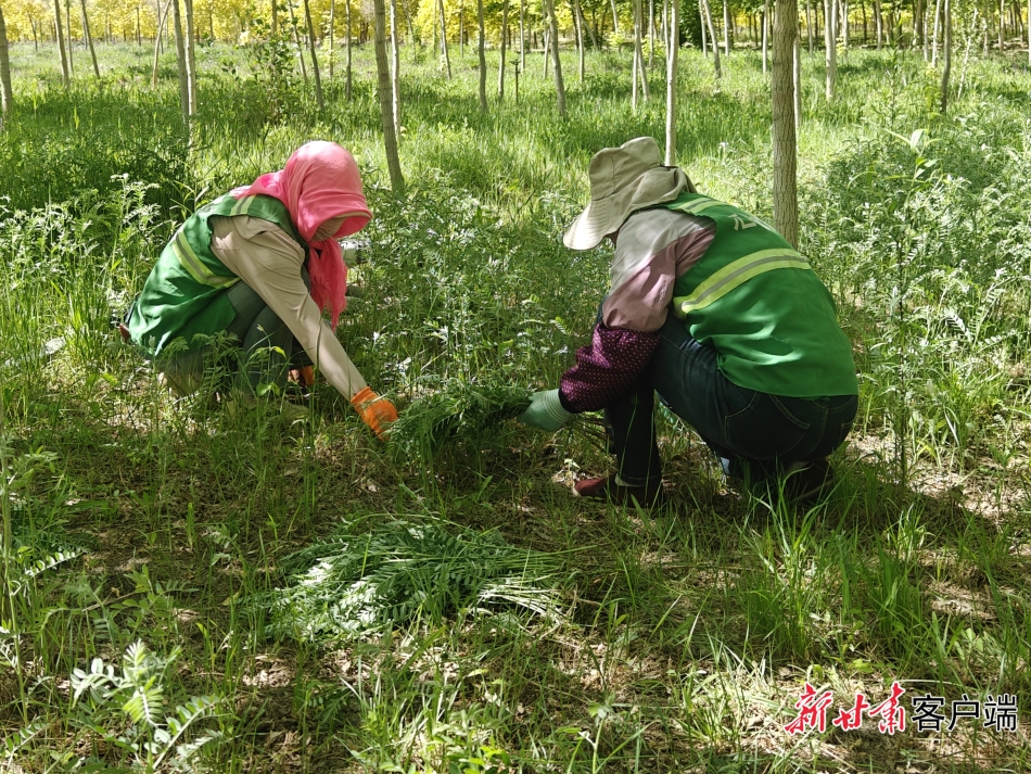 养护人员在黑河林场除草。
