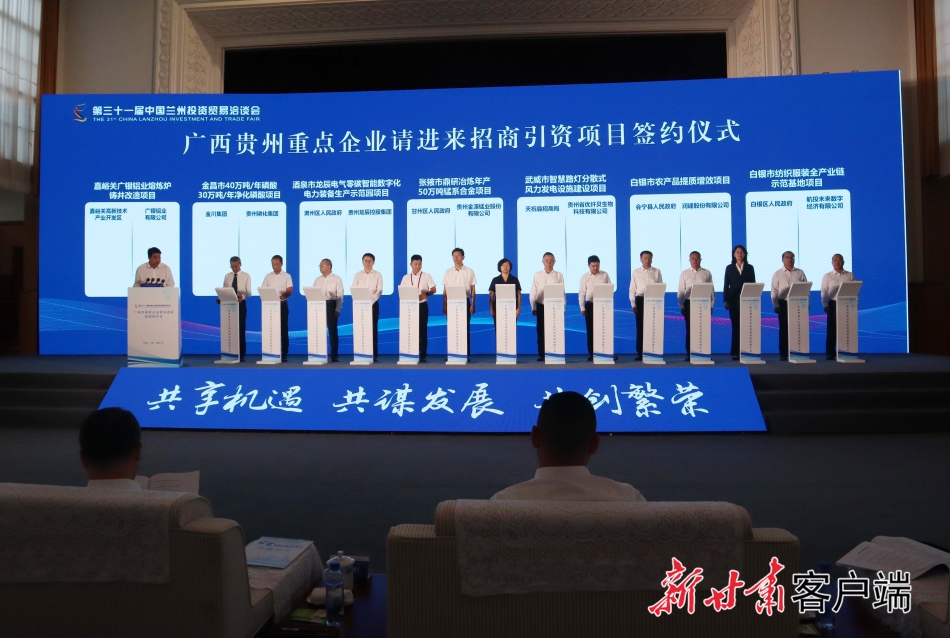 嘉峪关广银铝业熔炼炉和铸井改造项目、金昌市年产40万吨磷酸和30万吨净化磷酸项目、白银市农产品提质增效项目等12个项目进行了现场签约。此次活动共计签约招商引资项目44个,涉及石油化工、新能源及装备制造、新材料、数字信息、特色农产品及食品加工等领域,签约金额284亿余元。