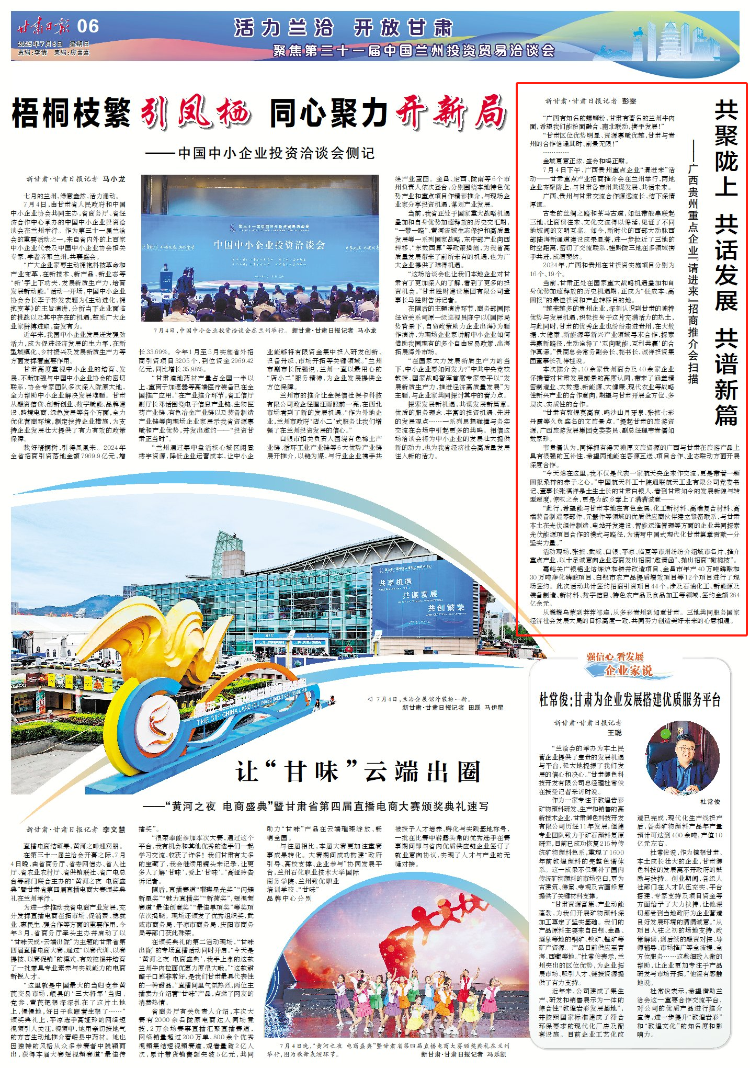 【甘快看·聚焦兰洽会】共聚陇上 共话发展 共谱新篇——广西贵州重点企业“请进来”招商推介会扫描