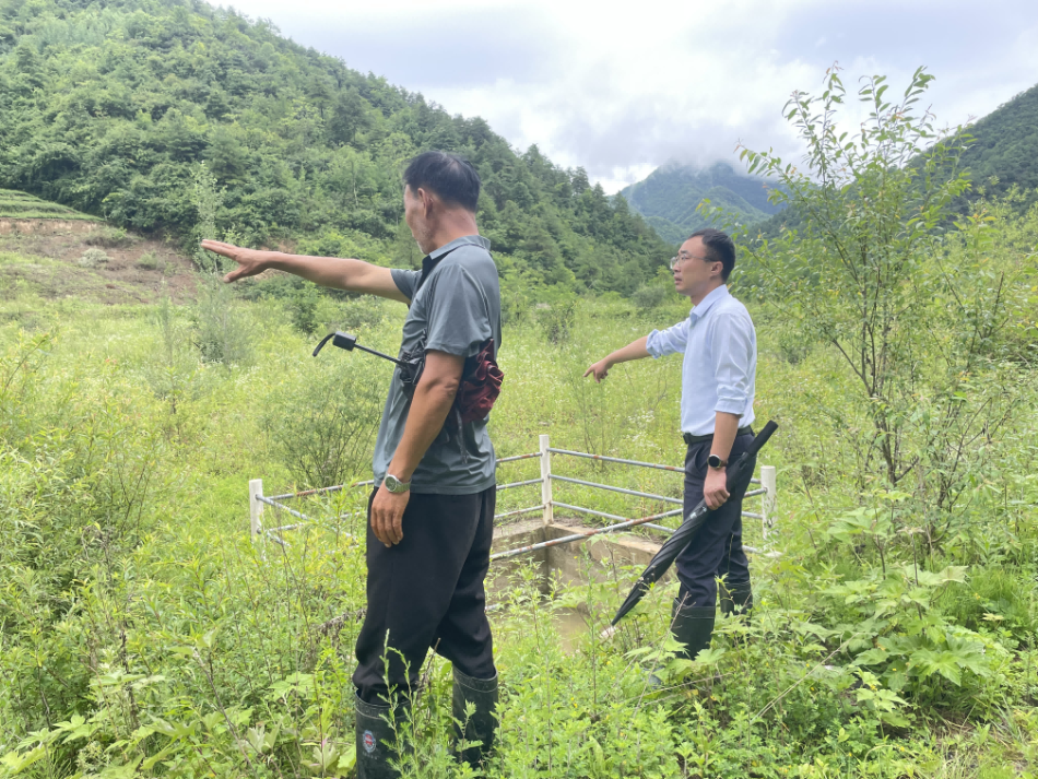 成县二郎乡镇村干部巡查尾矿库防洪安全(张敏 摄)