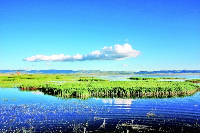 斑头雁轻盈掠过湖面,黑颈鹤的欢叫响彻天空,成群的牛羊在悠闲散步……仲夏时节,漫步在甘肃省甘南藏族自治州的尕海湖畔,蓝天与碧水相映成画,如织游人争相打卡拍照。