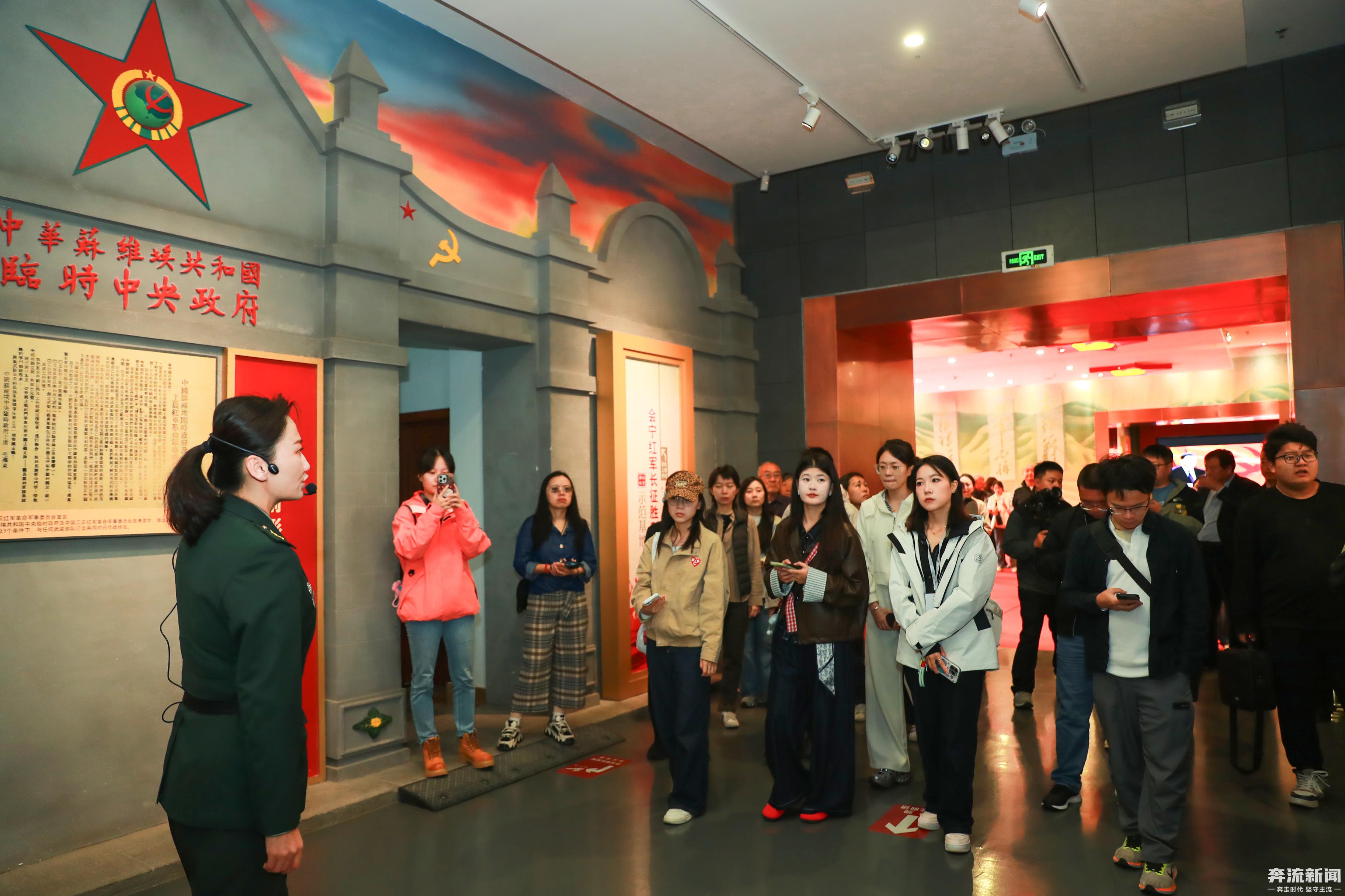 秋日的会宁,晴空万里,天高云淡。高耸入云的中国工农红军第一、二、四方面军会师纪念塔,在阳光照耀下格外庄严肃穆。 “会宁大会师标志着长征的伟大胜利,是中国革命走向成功的转折点,其‘两点一存’的历史地位至关重要。”在纪念馆讲解员段亚平的讲述中,媒体团依次参观了会师门、红军长征胜利纪念馆等革命历史遗迹。纪念馆内,一幅幅珍贵的黑白照片、一件件历经战火硝烟的文物、一段段感人至深的故事,将大家的思绪带回到了那段战火纷飞、激情燃烧的岁月。媒体记者们仔细观看展览,认真聆听讲解,不时驻足询问,用笔和镜头记录下这段波澜壮阔的革命历史,深刻理解了红军三大主力会宁大会师的重大历史意义和会宁作为长征胜利终点站的特殊历史地位。