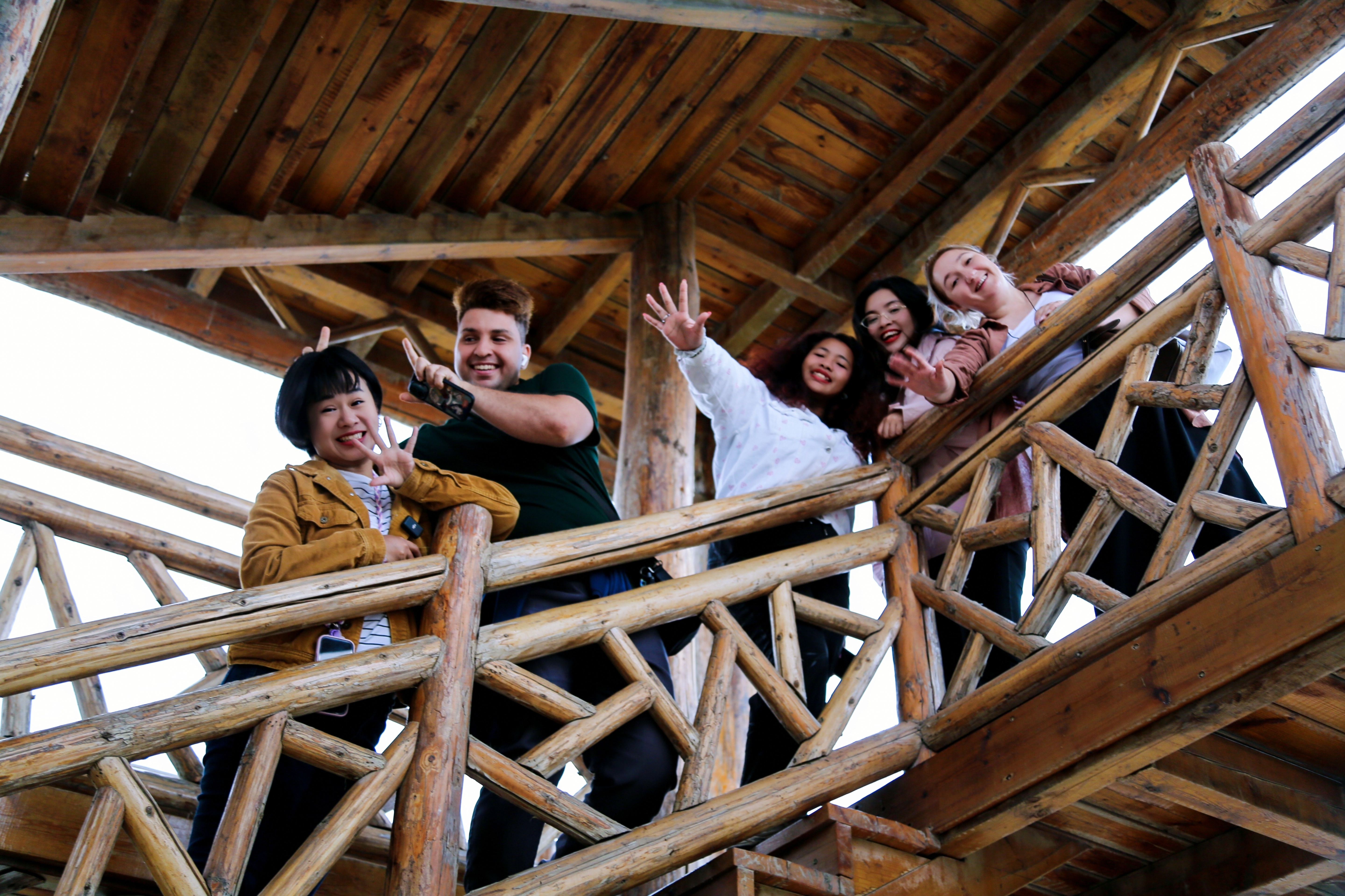 外国网红博主们在观望台合影