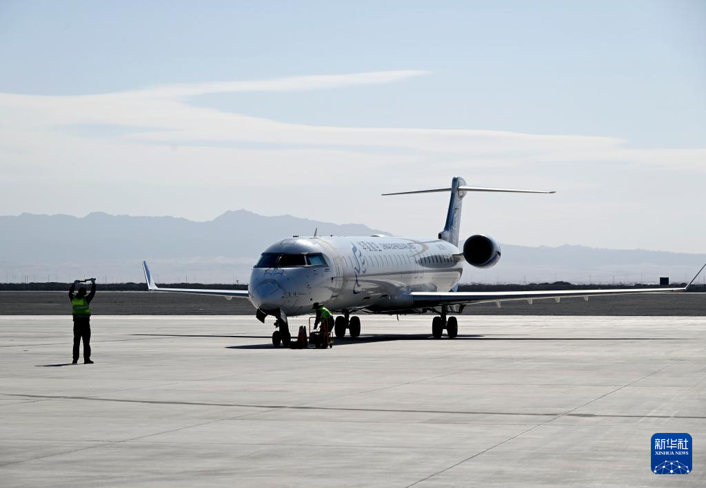 10月26日,敦煌至哈密冬春航季首航航班降落在敦煌莫高国际机场。新华社发(张晓亮 摄)