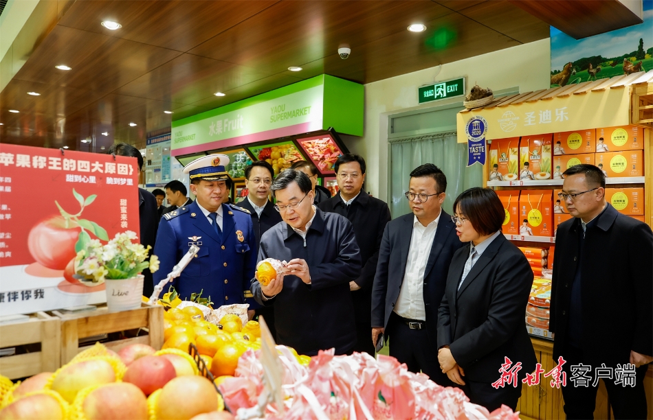 新甘肃客户端兰州12月30日讯(新甘肃·甘肃日报记者 崔亚明)元旦假期来临之际,省委书记、省人大常委会主任胡昌升今天在兰州调研检查安全生产、民生商品保供稳价和节日消费等工作,走访慰问全国先进工作者、老党员和基层一线工作人员,向全省人民致以节日祝福。他强调,要深入学习贯彻党的二十届四中全会精神,全面贯彻落实习近平总书记视察甘肃重要讲话重要指示精神,坚持以人民为中心的发展思想,纵深推进主动创安主动创稳,以“时时放心不下”的责任感履职尽责,用心用情做好元旦期间惠民生、保供应、促消费、护稳定等工作,确保全省人民度过欢乐平安祥和的节日。