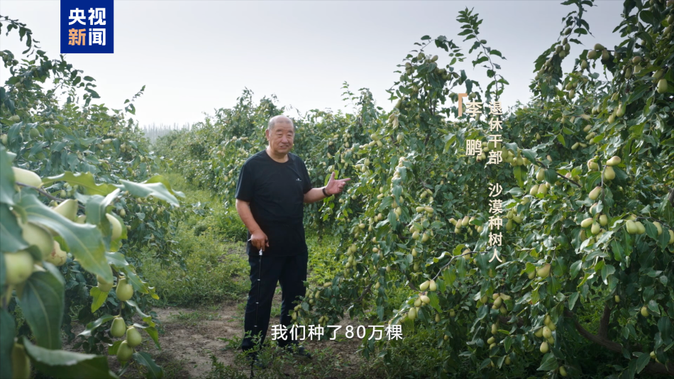 “在沙漠里种一棵树都不容易,我们种了80万棵。”李鹏植树17年,最困难时连一瓶矿泉水都舍不得买。他把90多岁高龄父亲接到沙漠同住,父亲临终前说:“你干的是好事,把我埋在这里继续陪着你。”
