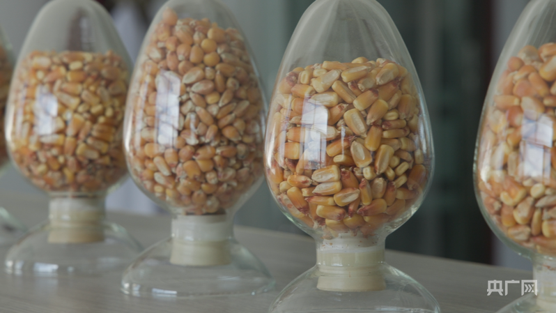 不同品种的玉米种子展示(央广网记者 魏晋雪 摄)
