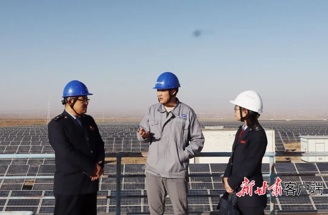 税务干部在光伏发电项目现场为纳税人讲解政策。