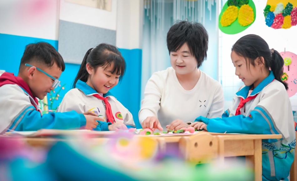 金昌市第三小学双湾校区老师和学生们一起做手工。(资料图)金川区委宣传部供图
