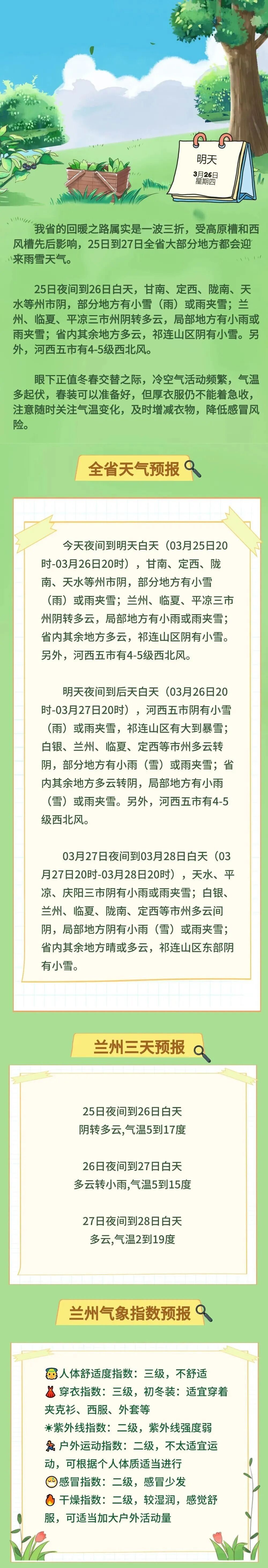 25~27日甘肃大部迎来雨雪天气,需注意防范!