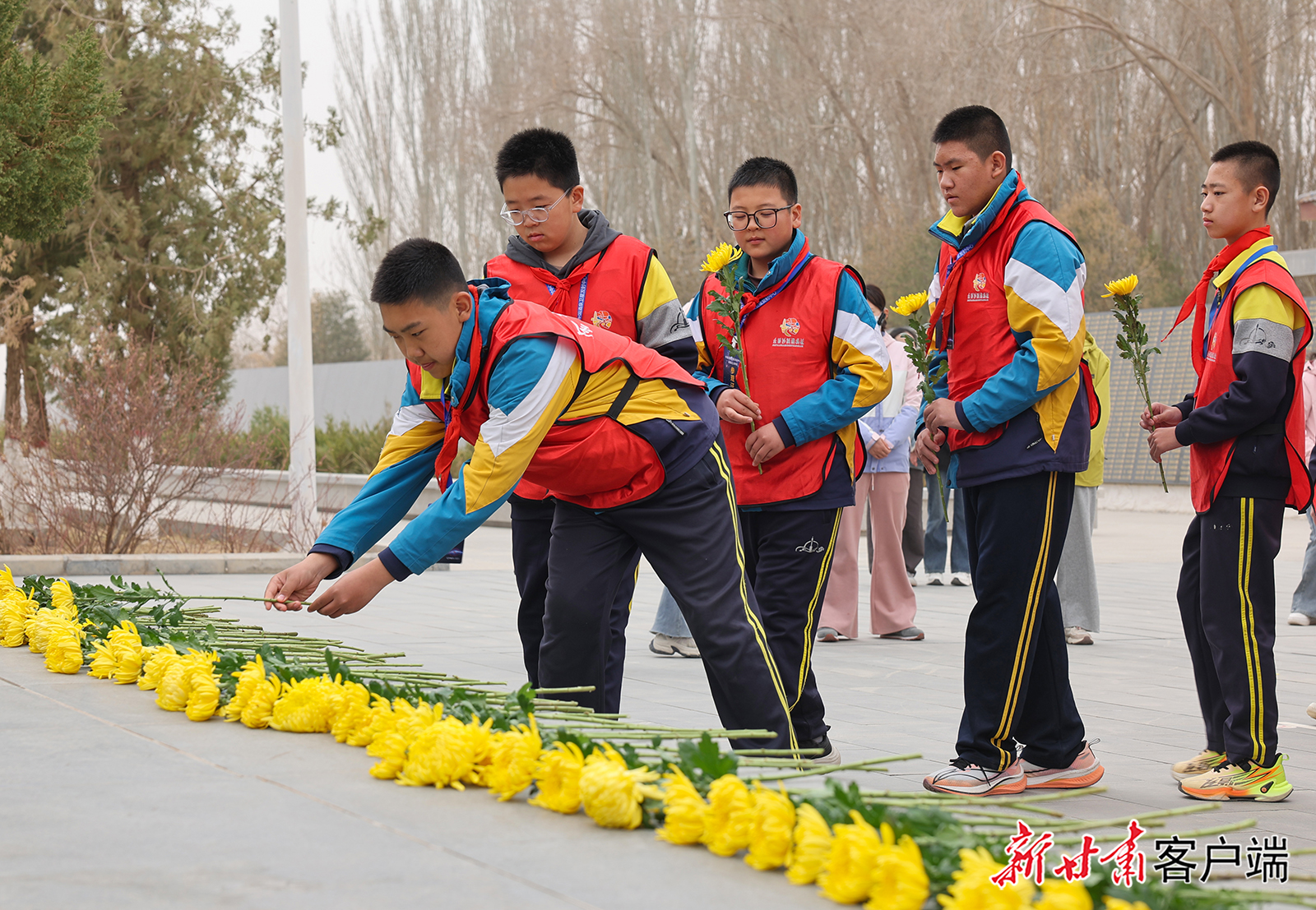 3月26日,金塔县组织少先队员代表前往酒泉卫星发射中心东风革命烈士陵园,向革命先烈敬献鲜花、默哀致敬,缅怀革命先烈。