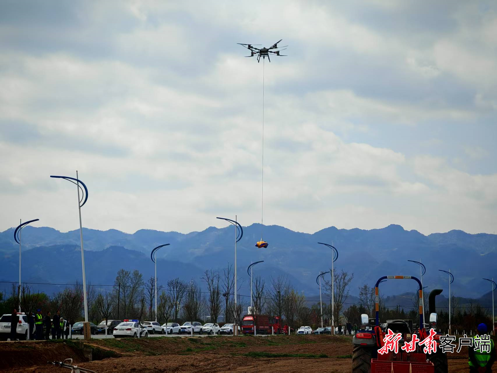 为破解丘陵山区农机“进地最后一公里”难题,甘肃创新农机应用模式,让农机通达更便捷。在实际生产应用中,大型无人机成为“空中运输队”,可将50公斤的手扶式旋耕机吊运至不具备通行条件的田块,并有针对性地将最大飞行荷载提升至85公斤,可运输化肥、种子乃至收获的粮食,深受农户喜爱;针对陇南山地25度以上坡地农资和农产品“运输难”问题,研发的山地智能高效轨道运输机,载重量400公斤以上,转弯半径4米以下,可通过手机APP远程操控,被农民形象地称为“爬山的农用小火车”,2024年在武都、康县等5县区建设山地运输轨道58公里,安装轨道运输机85台,当年完成2400吨以上农资及农产品运输作业。