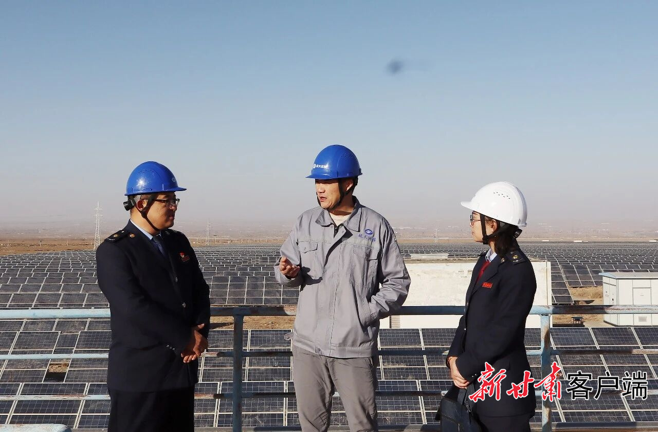 税务干部在光伏发电项目现场为纳税人讲解政策。