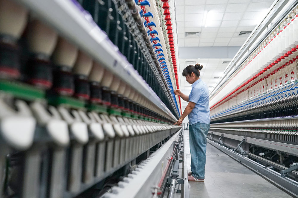 工人在江苏悦达纺织集团智能生产车间工作。新华社记者李博 摄