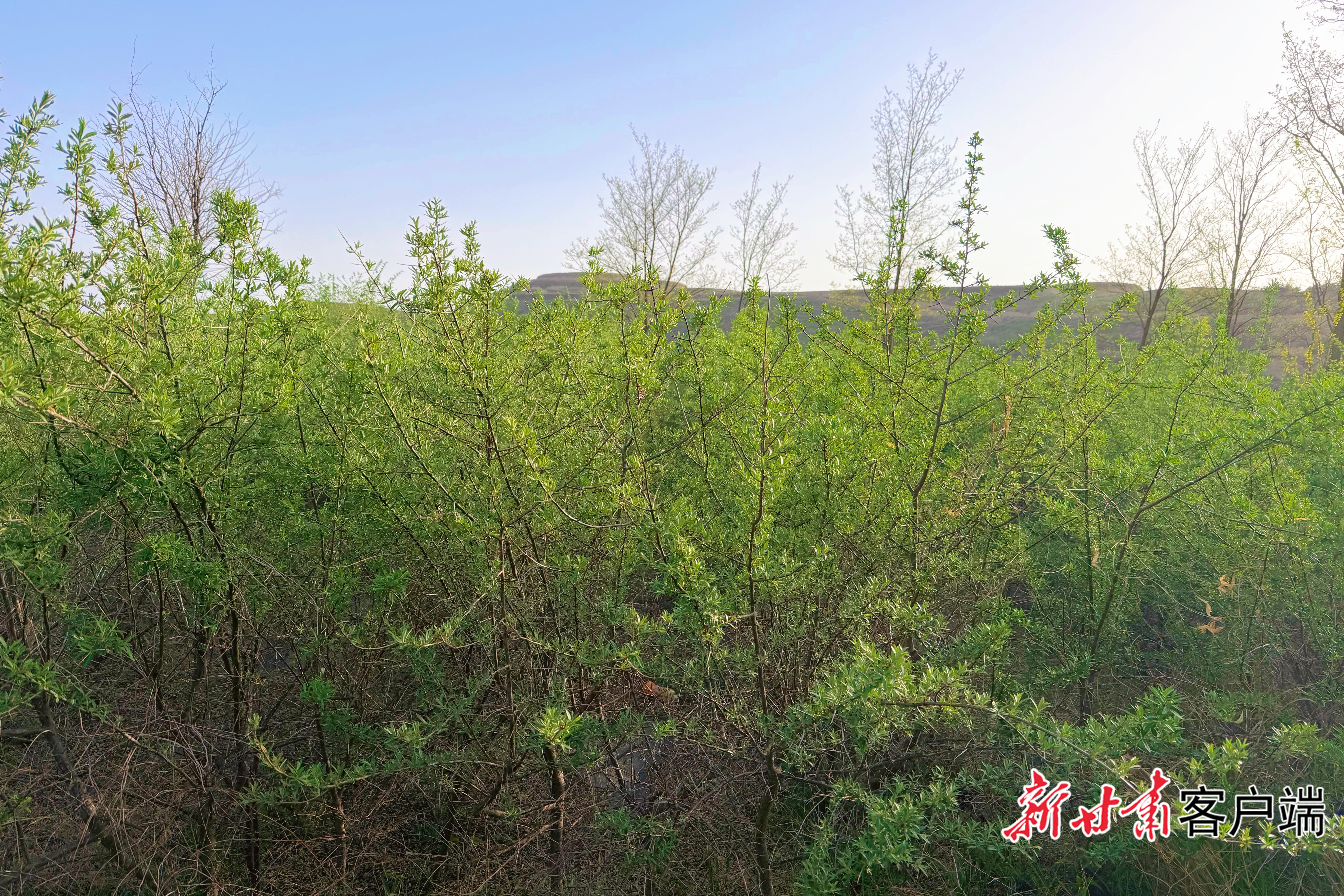 暮春时节,和风轻拂陇东黄土高原,华池县柔远镇火焰沟满目焕新。登高远眺,连绵起伏的沟壑间,一排排沙棘林带依山就势、迎风挺立,新芽缀满枝头,绿意漫染群山,勾勒出一道生机盎然的生态风景线。