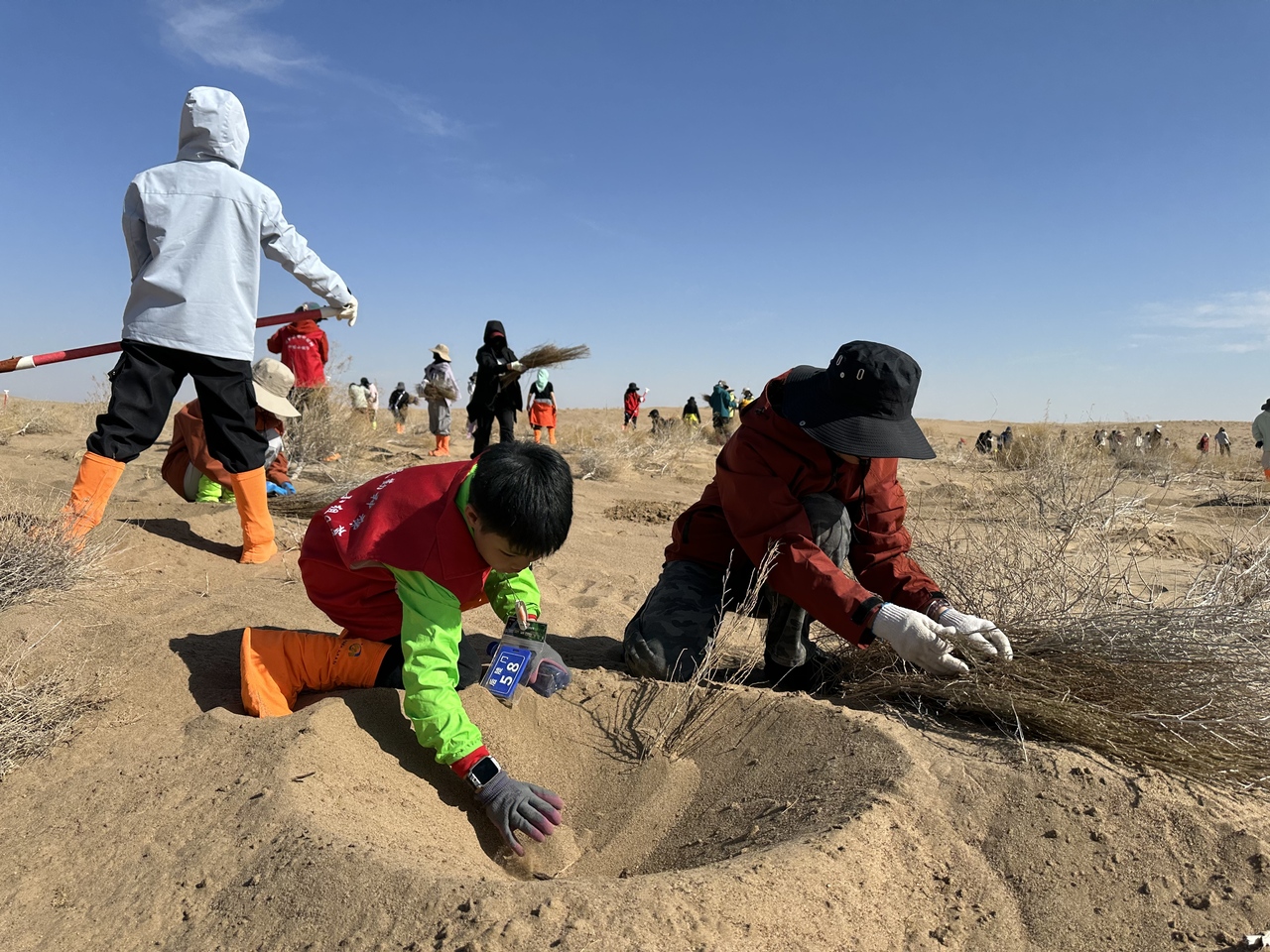 截至4月27日,累计参与人数超4万人次,新栽耐旱树苗100多万株。风沙线上,绿意正以不可阻挡之势步步推进,在荒芜沙海间,铺就出一条向绿而生、向光而行的生态之路。