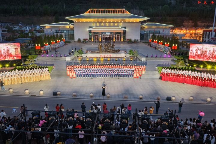 图为4月11日在两当兵变纪念馆前举行的两当县春季文旅活动现场。(两当县委宣传部供图)