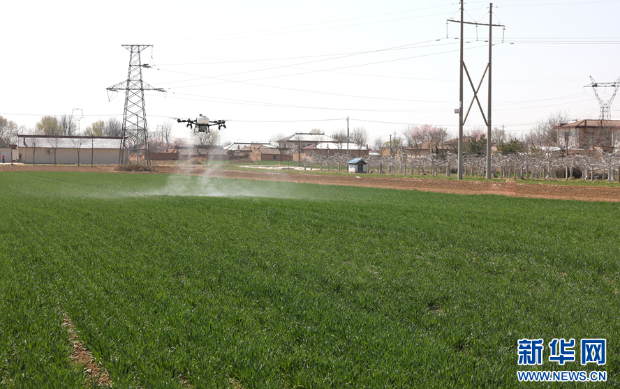 庆阳市西峰区董志镇郭堡村无人机飞防作业现场。(盘小美 摄)