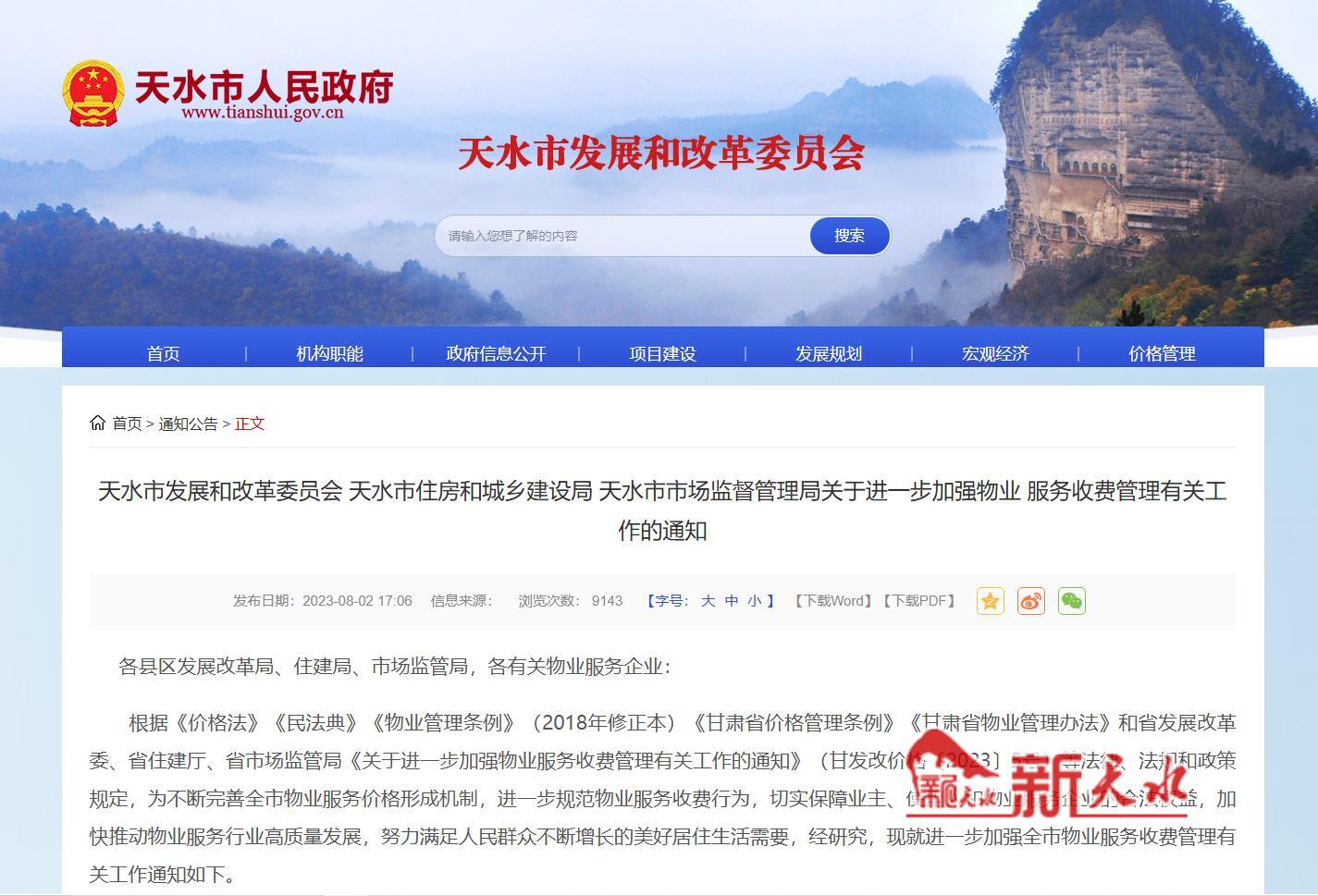 上述《通知》公布了《天水市市区普通住宅小区物业服务收费指导价标准》,如下: