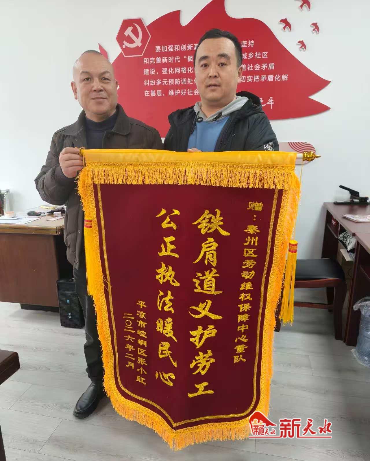 张先生说,他带6个务工人员于2024年在一家公司的两个工地干活后,工程交工一年了没有拿到务工费,便于2026年2月5日向秦州区劳动保障维权中心进行了求助。该中心的工作人员非常热心,很快就帮他们登记、联系,不厌其烦地进行协调、督促,仅用八九天时间,就赶在春节前促使来自浙江的某公司给他们付结了约14万元欠款。“通过这件事我深深感受到,咱们天水的劳动保障部门确实是高效为民、给群众维权帮办实事的可信赖单位。我们作为务工人员,发自内心地感激劳动保障维权中心的积极帮助,尤其要谢谢具体妥善处理问题的董姓执法人员,是他用实际行动践行了公正执法、服务群众的职责,切实维护了劳动者合法权益。”