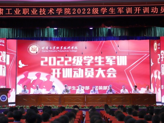 7月1日上午,甘肃工业职业技术学院在大学生活动中心举行2022级学生军训开训动员大会。
