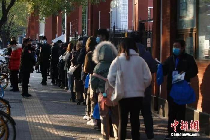 ▲资料图:公务员考试考场外,工作人员核验考生信息。 中新社记者 蒋启明 摄