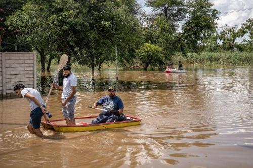 2022年12月9日,在南非约翰内斯堡,受灾居民乘船转移。新华社发(希拉兹·穆罕默德摄)