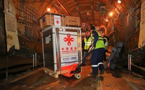 2022年11月12日,工作人员在白俄罗斯明斯克国际机场卸载中国政府援助的新一批新冠疫苗。新华社发(任科夫摄)