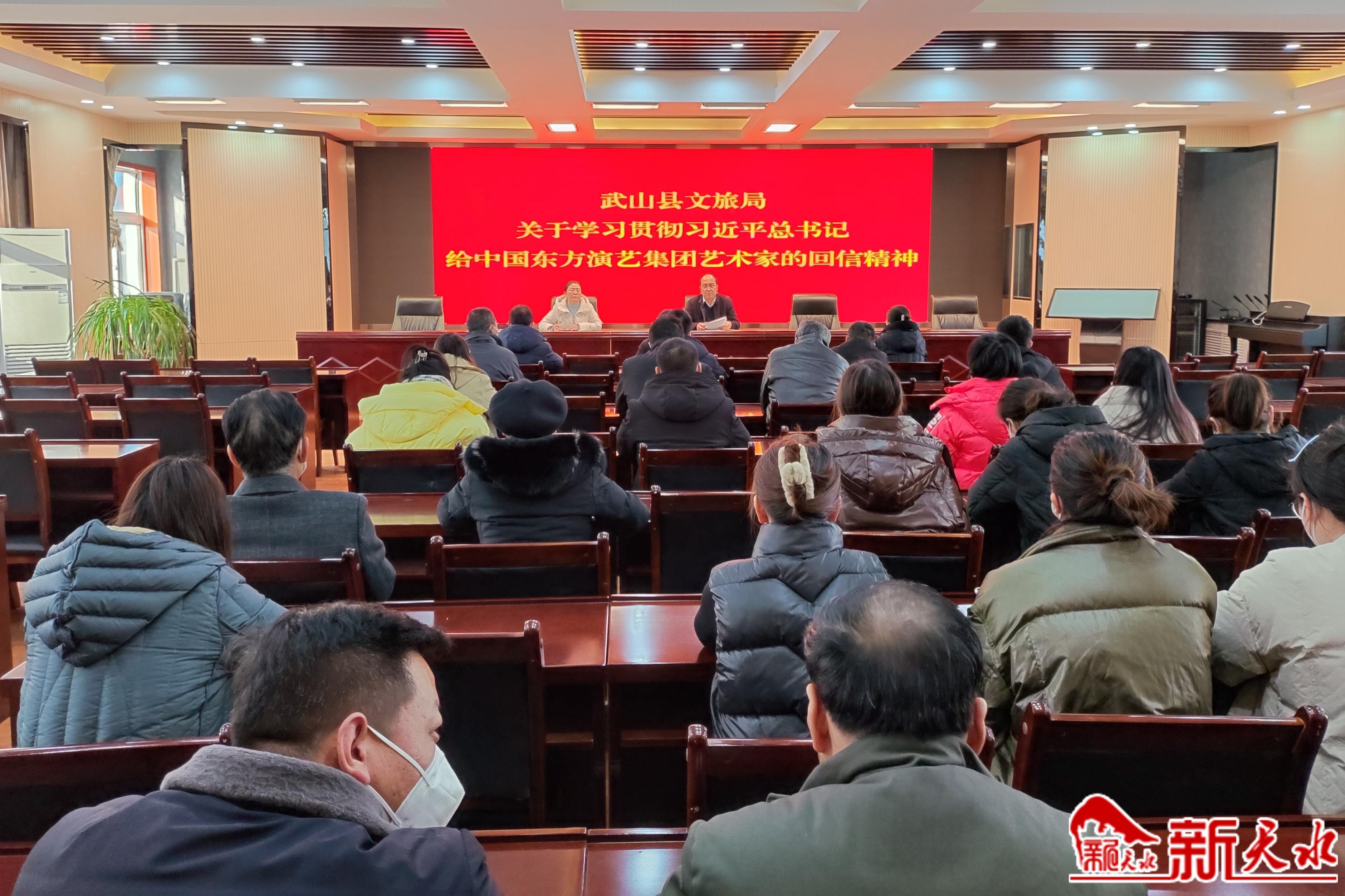 新天水讯 2023 年 1 月 9 日,武山县文旅局专题召开会议,学习贯彻习近平总书记给中国东方演艺集团艺术家回信精神。局机关、文化馆等干部职工参加会议。