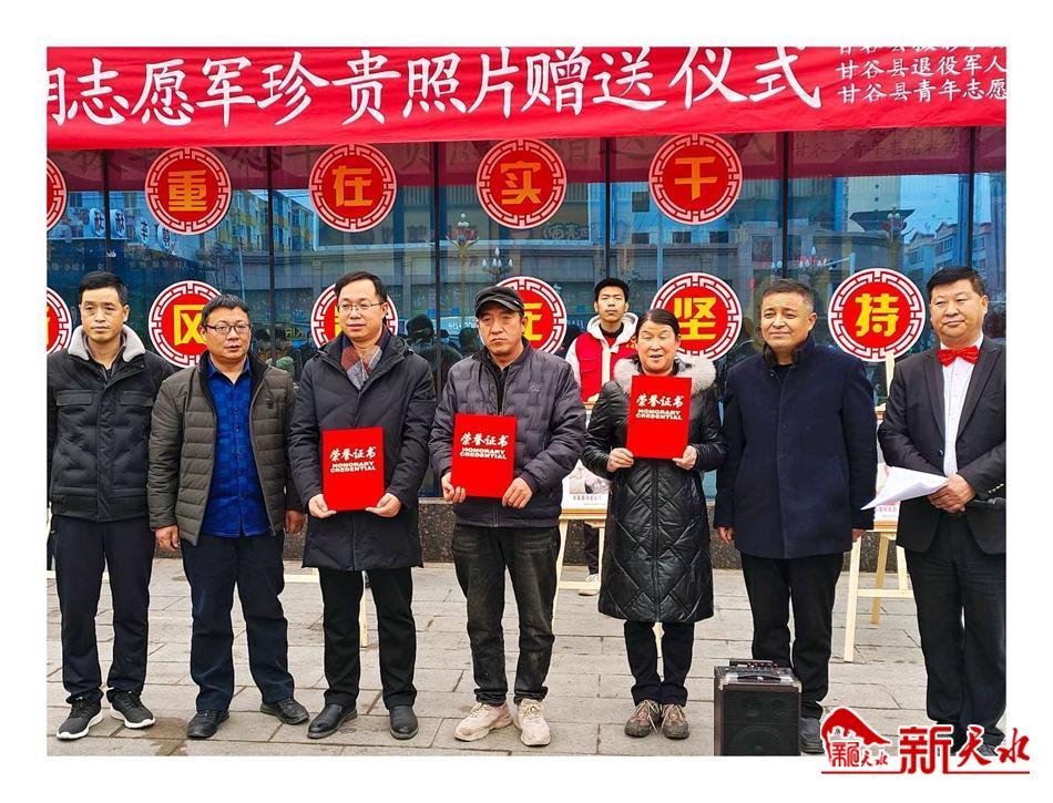 新天水讯 1月11日,甘谷县退役军人事务局、甘谷县摄影家协会举行抗美援朝老兵照片发放仪式暨38名抗美援朝老兵摄影展,展示老兵生活,传递人间真情,弘扬伟大的抗美援朝精神。