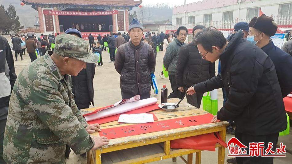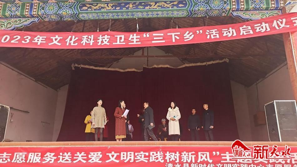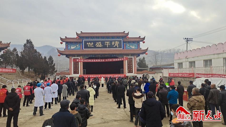 新天水讯 1月12日上午,清水县2023年文化科技卫生“三下乡”活动启动仪式在秦亭镇隆重举行,县文旅局、科技局、卫健局等19个县直单位的80余名工作人员和秦亭镇20村(社区)400名群众代表参加了活动。